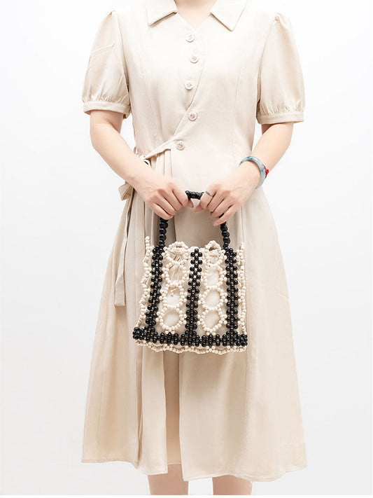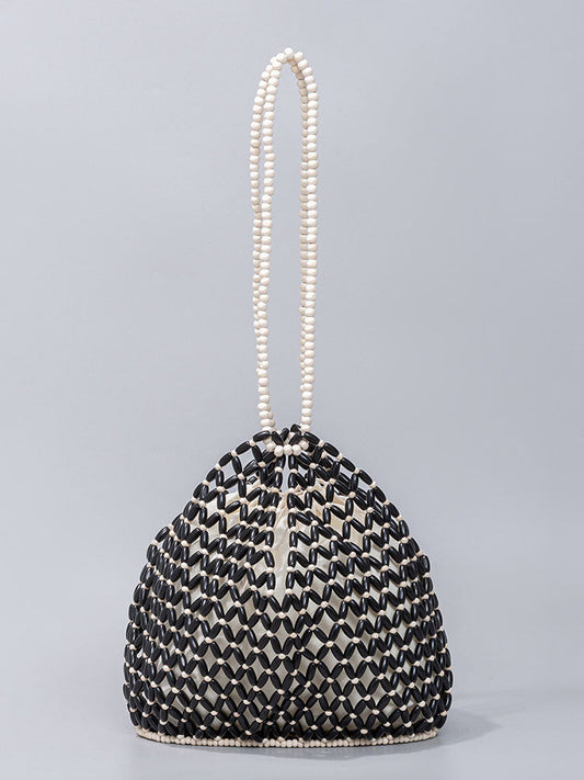 Hollowed-Out Wooden Bead Woven Bucket Bag