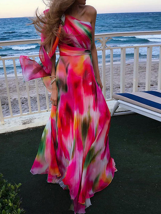 Printed One-Shoulder Dress Prom Gowns